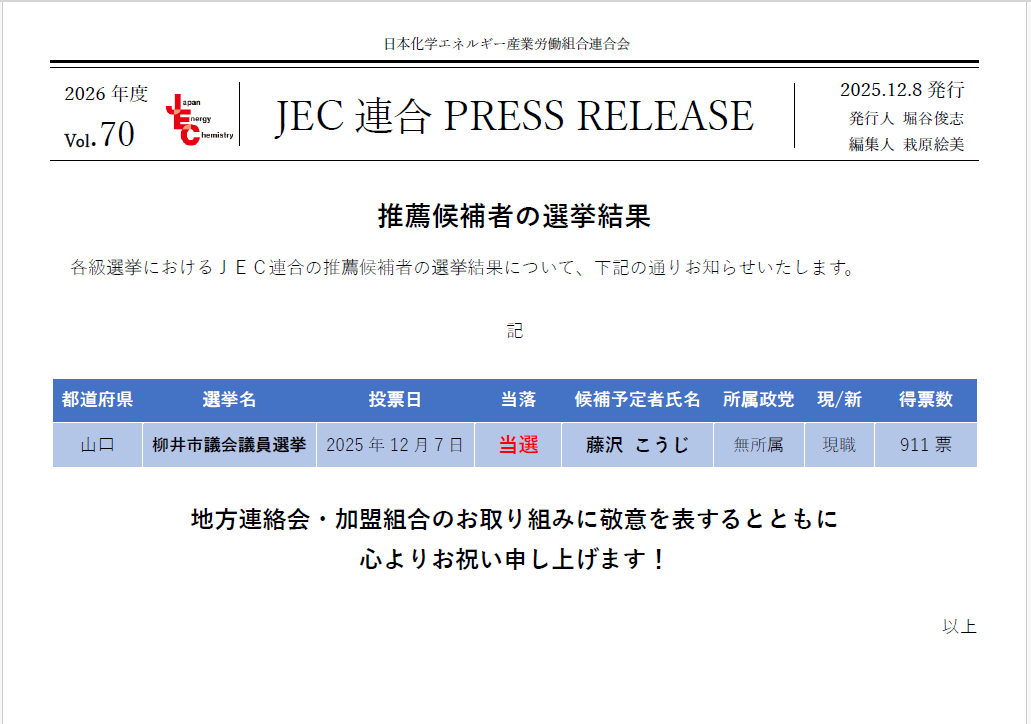 JEC連合PRESSRELEASE vol.70(25.12.8 柳井市議会議員選挙 選挙結果) .pdf