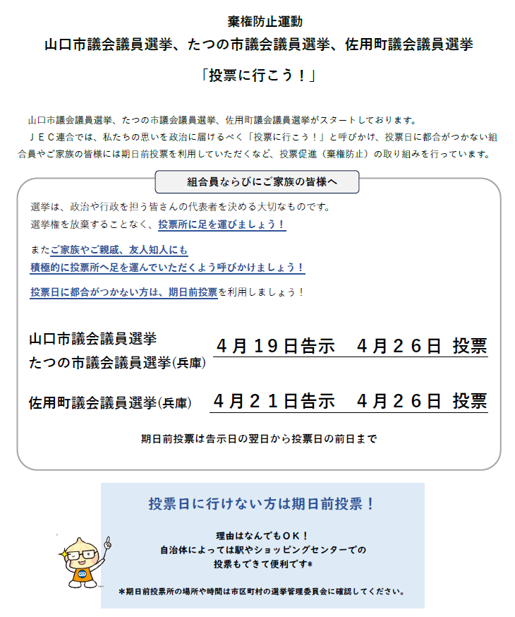JEC連合PRESSRELEASE vol.146(26.4.22 山口市議会議員、たつの市議会議員、佐用町議会議員選挙「投票に行こう」 ) .pdf